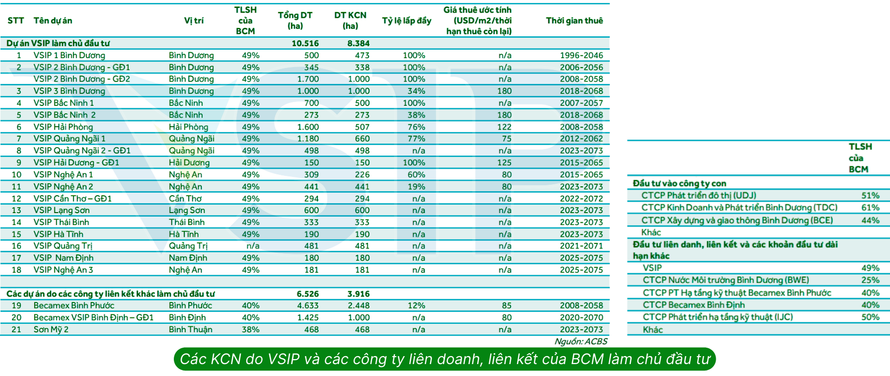 Trong các công ty liên doanh, liên kết của BCM thì tiềm năng đóng góp LN lớn nhất có thể kể đến đầu tiên là VSIP.
