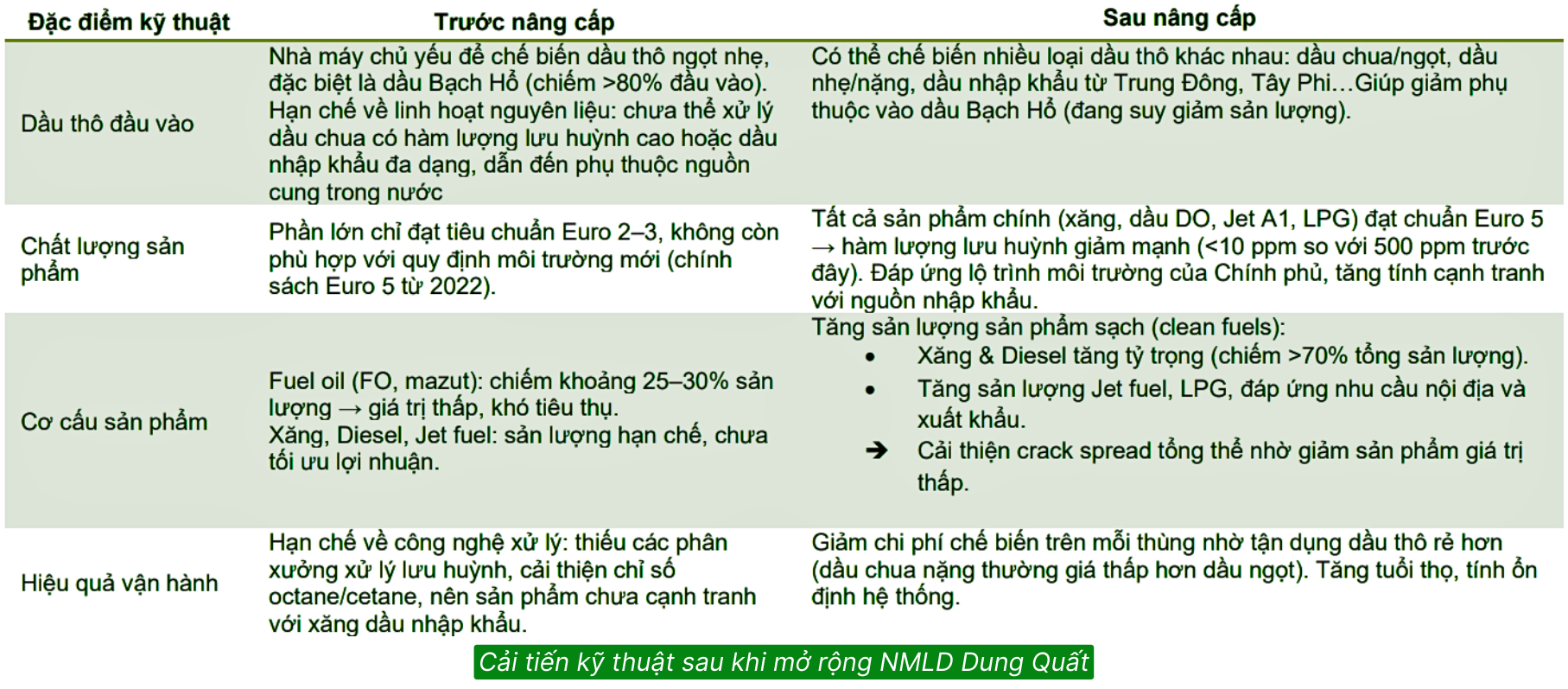 Dự án đặt mục tiêu hoàn thành vào tháng 3/2028, kỳ vọng nâng công suất chế biến dầu thô của BSR lên 171.000 thùng/ngày, tương đương bổ sung thêm khoảng 15,5% công suất hiện tại. Sản phẩm đầu ra sẽ đáp ứng tiêu chuẩn Euro 5. Nhu cầu tiêu thụ xăng dầu tiếp tục tăng trưởng cùng với dự án NMLD Dung Quất mở rộng sẽ là động lực tăng trưởng cho BSR trong dài hạn.