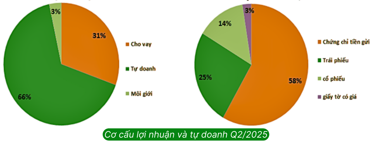 ➢ Với cơ cấu Tài sản tài chính chủ yếu là tiền gửi và trái phiếu và 14% cổ phiếu thì đây là 1 cơ cấu tự doanh an toàn của CTS. Vì vậy tỷ suất sinh lời bình quân của TS tài chính chắc chắn sẽ không cao sau khi CTS thoái hết vốn tại Trường Hải. Tính đến hết quý 2/2025, danh mục cổ phiếu tự doanh của CTS đang lãi khoảng 11%.