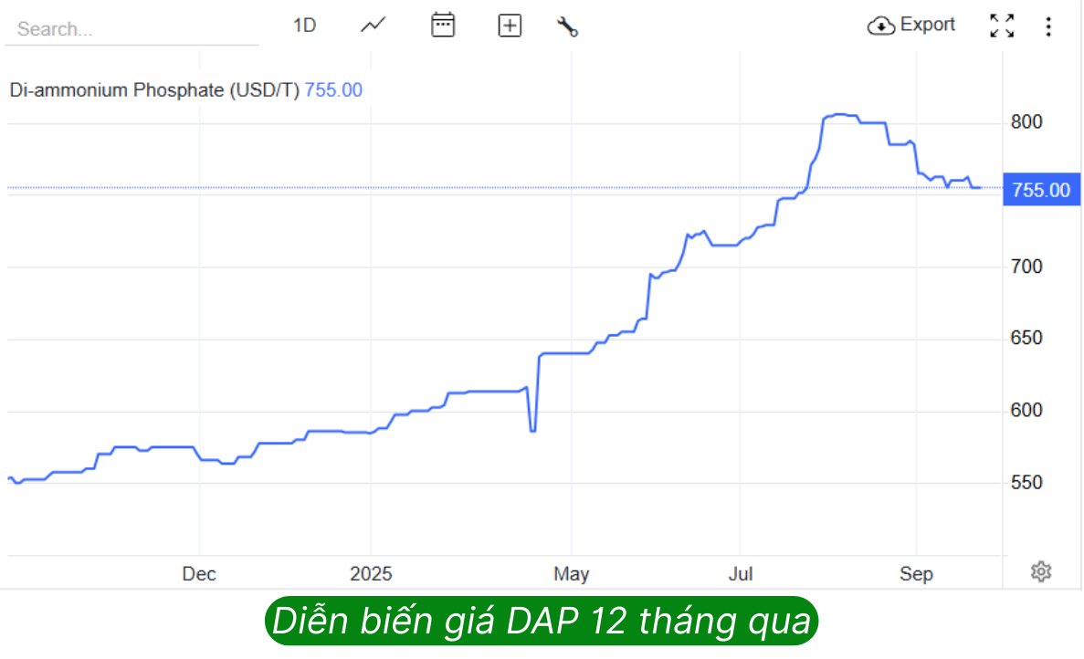 Giá phân bón DAP/MAP tiếp tục neo ở mức cao, chủ yếu do chính sách hạn chế xuất khẩu từ các quốc gia chủ chốt như Trung Quốc và Nga. Trong bối cảnh nguồn cung toàn cầu vẫn bị thắt chặt, giá DAP/MAP nhiều khả năng sẽ duy trì xu hướng cao trong thời gian tới. Với việc, DGC có thể tự chủ được 60 – 70% nguyên liệu về quặng apatit và thu mua lưu huỳnh tại các nơi có giá cả thấp hơn sẽ khiến cho biên lợi nhuận của mảng phân được tăng mạnh.
