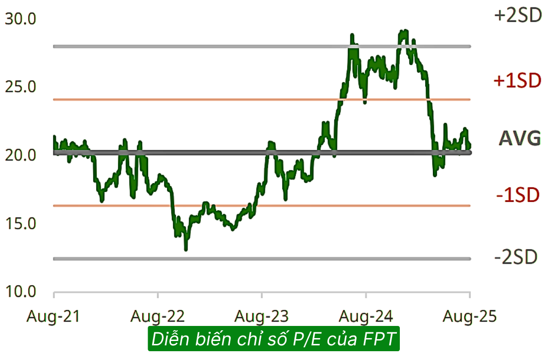 Giữa tháng 8/2025, ban lãnh đạo FPT đã điều chỉnh kế hoạch theo kịch bản cơ sở mới với tăng trưởng doanh thu là 15% so với cùng kỳ và tăng trưởng lợi nhuận là 18%-19% so với cùng kỳ. Những con số này thấp hơn so với mục tiêu tại ĐHĐCĐ là tăng trưởng doanh thu 20% và tăng trưởng lợi nhuận trước thuế 21%.