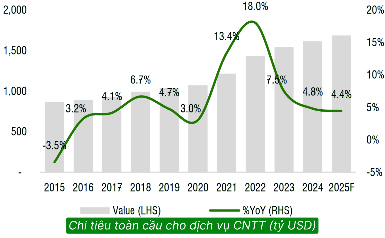 Tuy có dấu hiệu chững lại, doanh thu từ mảng CNTT vẫn tăng trưởng 2 chữ số trong nửa đầu năm 2025.