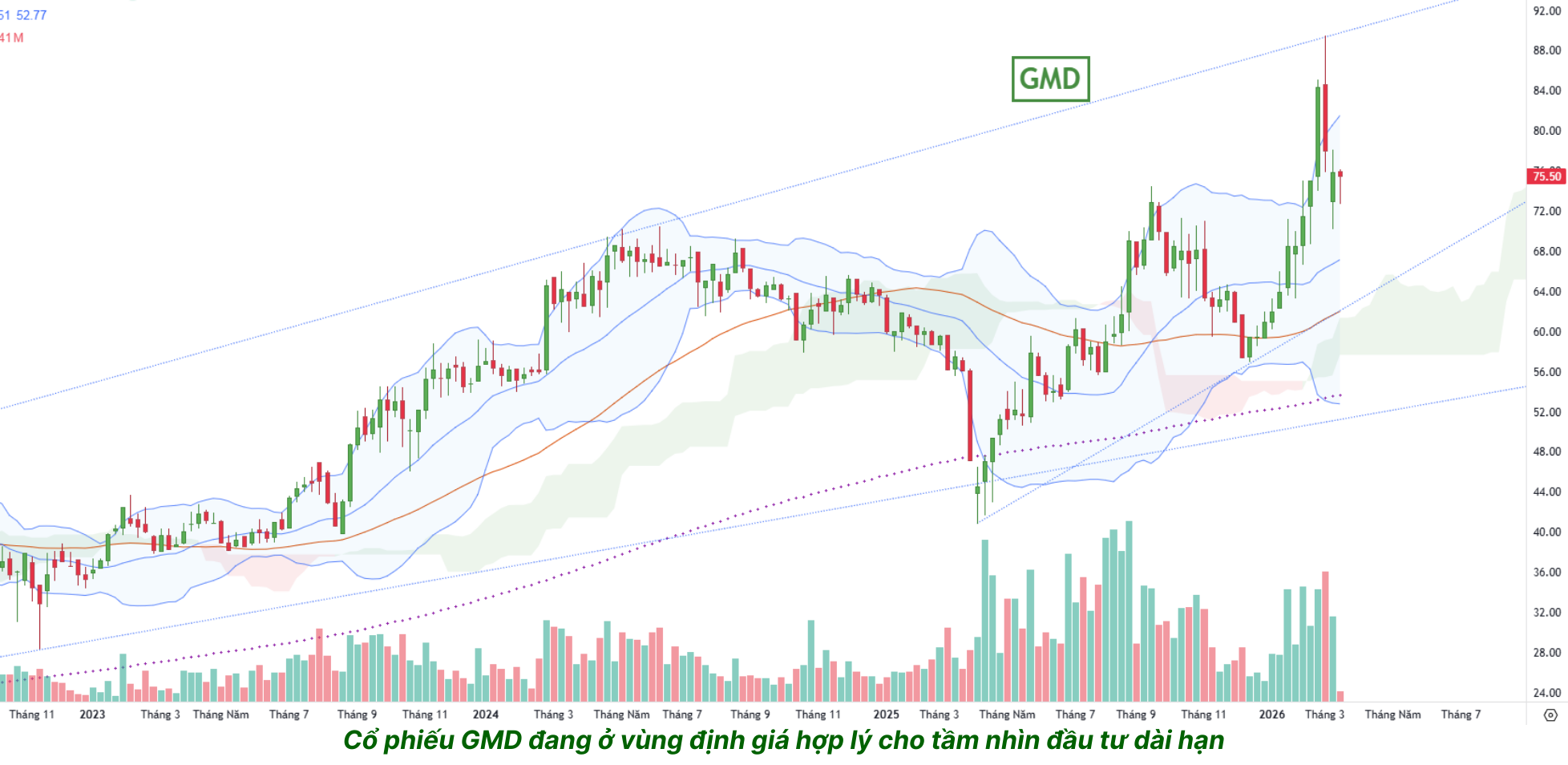 GMD ở mức giá 74.000đ hiện tại là một bài toán risk/reward không còn quá hấp dẫn với nhà đầu tư mới, nhưng vẫn là vị thế nên nắm giữ dài hạn cho ai đã vào từ vùng thấp hơn. Ba luận điểm cốt lõi để duy trì quan điểm tích cực: