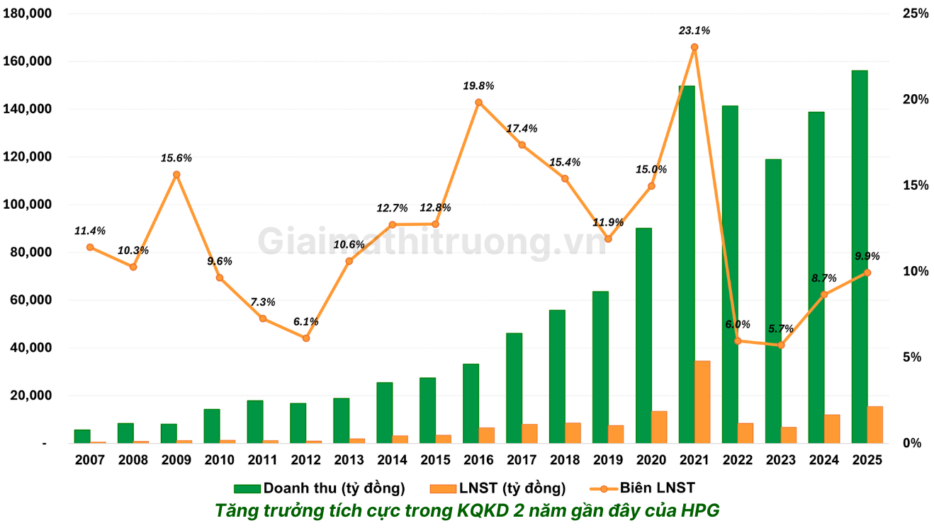 Về kỳ vọng lợi nhuận 2026: dựa trên công suất 16 triệu tấn vận hành đầy đủ cả năm, biên lợi nhuận cải thiện nhờ chi phí nguyên liệu ổn định, và nhu cầu nội địa phục hồi, mức lợi nhuận 18.000 – 22.000 tỷ đồng sau thuế (tương đương tăng trưởng 16–42%) là kịch bản khả thi đối với HPG.