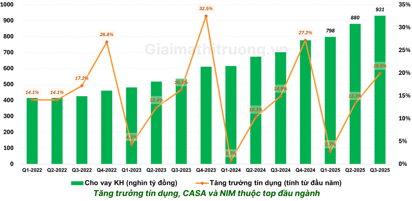 Tăng trưởng tín dụng, CASA và NIM thuộc top đầu ngành