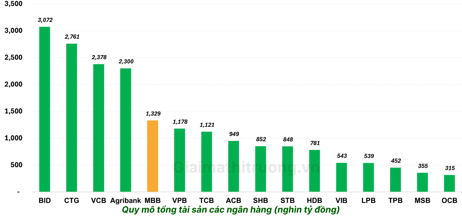 MBB thuộc top 5 các ngân hàng có quy mô tổng tài sản lớn nhất ngành, chỉ sau 4 ngân hàng quốc doanh. Là ngân hàng ngoài quốc doanh có quy mô tổng tài sản lớn nhất, MBB nắm giữ nhiều lợi thế cạnh tranh vững mạnh.