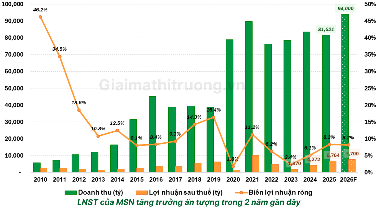 Năm 2025 tuy doanh thu giảm nhưng lợi nhuận MSN đạt mức cao nhất 4 năm.