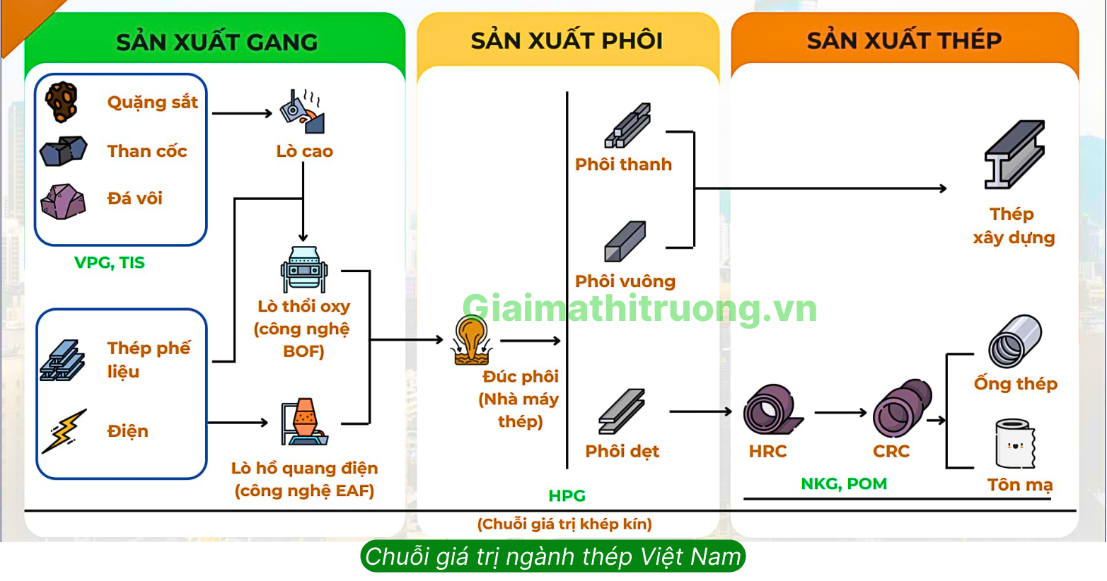 - Kinh doanh và phân phối: Phân phối sản phẩm thép nội địa và xuất khẩu sang hơn 50 quốc gia, tập trung vào Đông Nam Á, châu Phi và châu Âu.