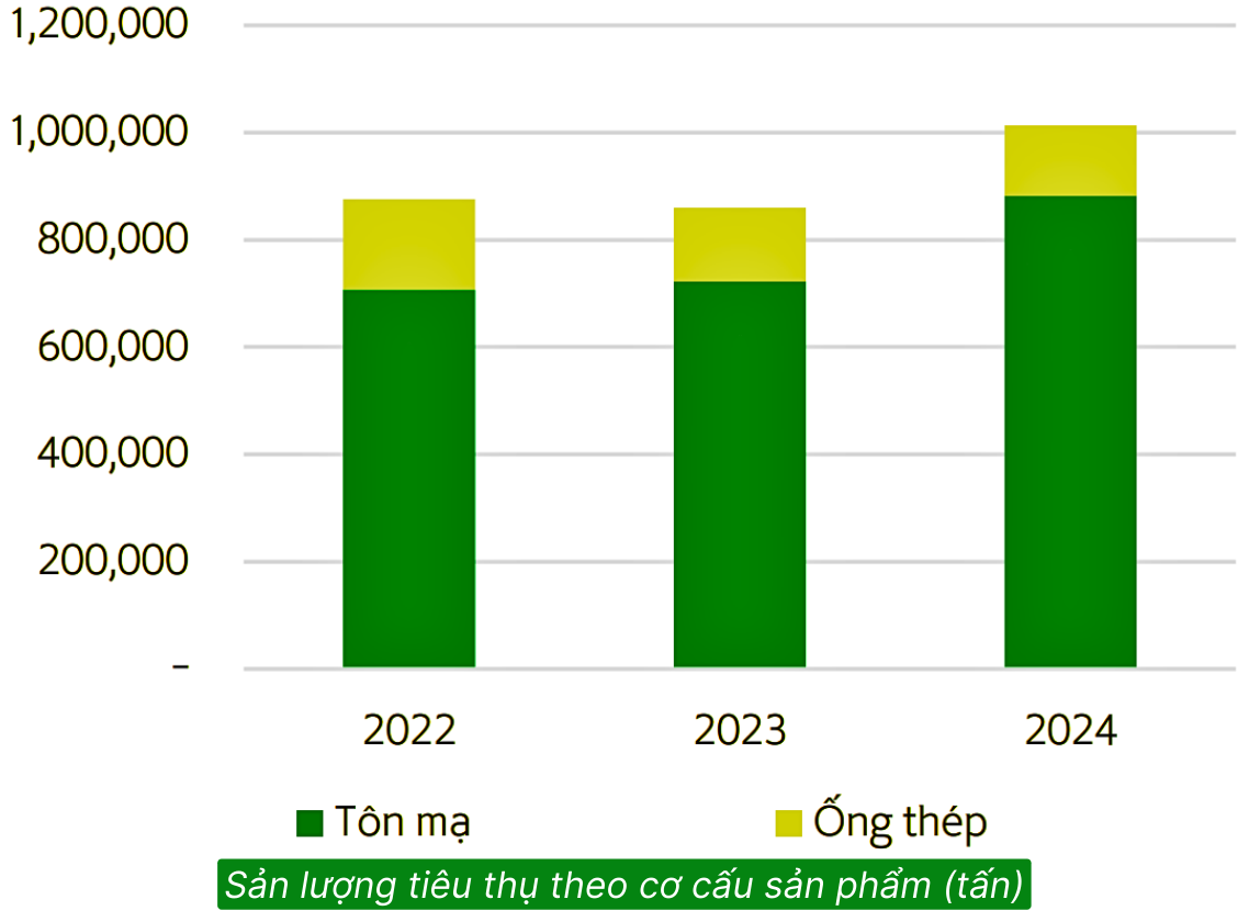 Điểm sáng là thị trường nội địa tăng trưởng tích cực, giúp phần nào bù đắp đà giảm từ xuất khẩu. Cụ thể, trong 6T/2025, NKG tiêu thụ hơn 407 nghìn tấn tôn mạ, giảm 13% svck, trong đó xuất khẩu giảm mạnh 48% svck còn 179 nghìn tấn, trong khi tiêu thụ nội địa tăng 84,4% svck, đạt gần 228 nghìn tấn.