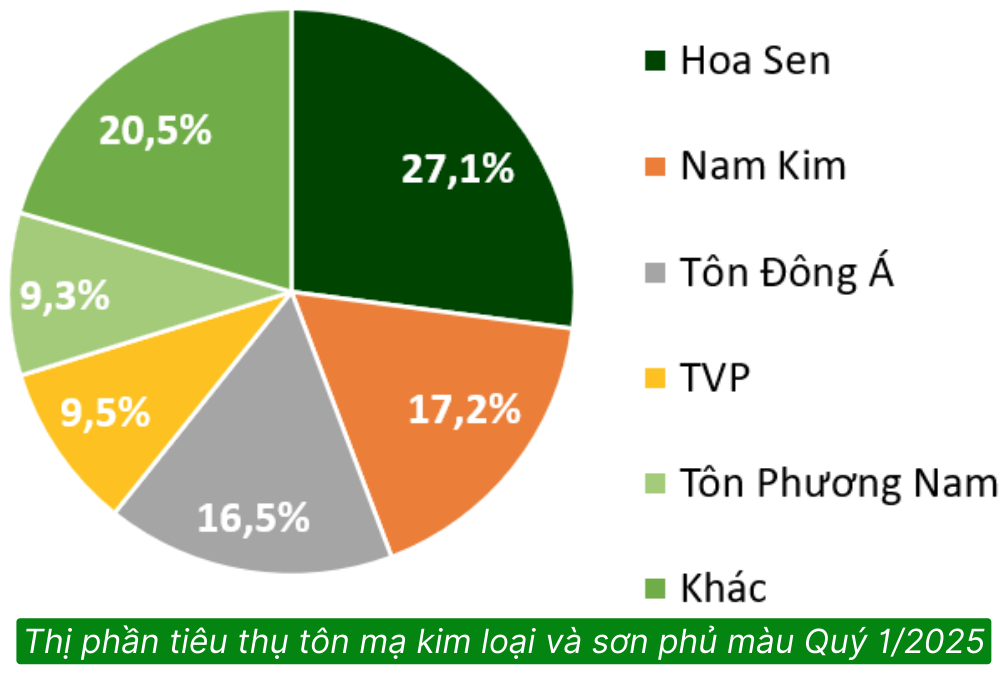 Trước sự bảo hộ thương mại mạnh mẽ và rào cản thuế quan, NKG đã tập trung mở rộng thị phần nội địa của mình từ mức 10.79% năm 2024 lên 17,2% trong quý 1/2025 ở mảng tôn mạ.