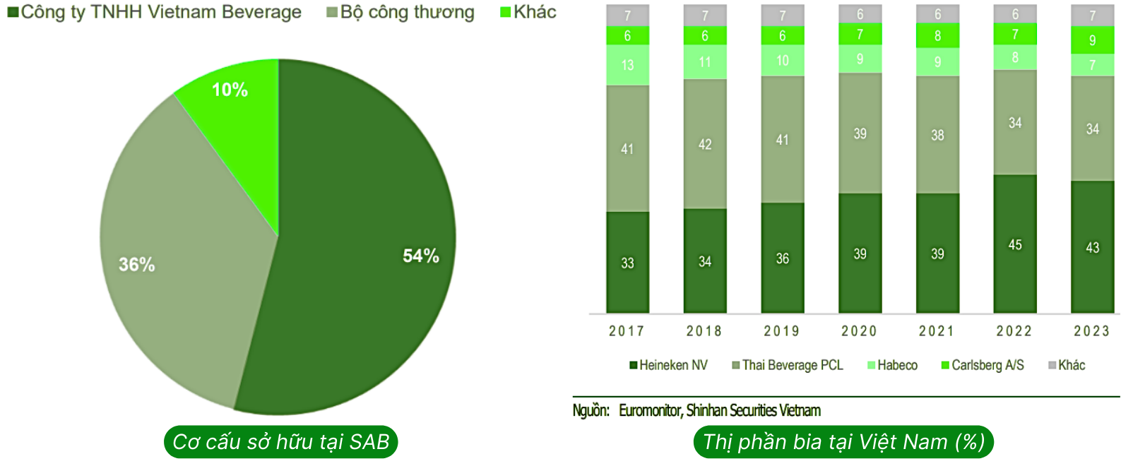 Thị phần ngành bia khá cô đặc khi tập trung vào tay của hai ông lớn là Heineken và Sabeco. Thị phần SAB bắt đầu bị thu hẹp từ năm 2019, ngược lại thì thị phần của Heineken lại có xu hướng mở rộng nhờ vào những chiến lược hiệu quả trong thời gian đại dịch, trong khi đó sự sụt giảm thị phần Sabeco phản ánh tình hình chung của thị trường. SAB được nhận diện rộng rãi qua các dòng sản phẩm từ bình dân đến cao cấp mang hương vị Việt như bia 333, bia Saigon Chill. Trong tương lai, việc nghiên cứu và cho ra mắt các dòng sản phẩm cao cấp sẽ là chiến lược để doanh nghiệp có thể duy trì được vị thế và giành thêm thị phần.