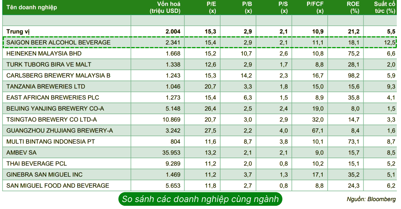 - Nếu hoàn thành KH năm, P/E forward 2025 của SAB là: 12.50, cho thấy cổ phiếu đang được định giá hấp dẫn so với tiềm năng tăng trưởng.