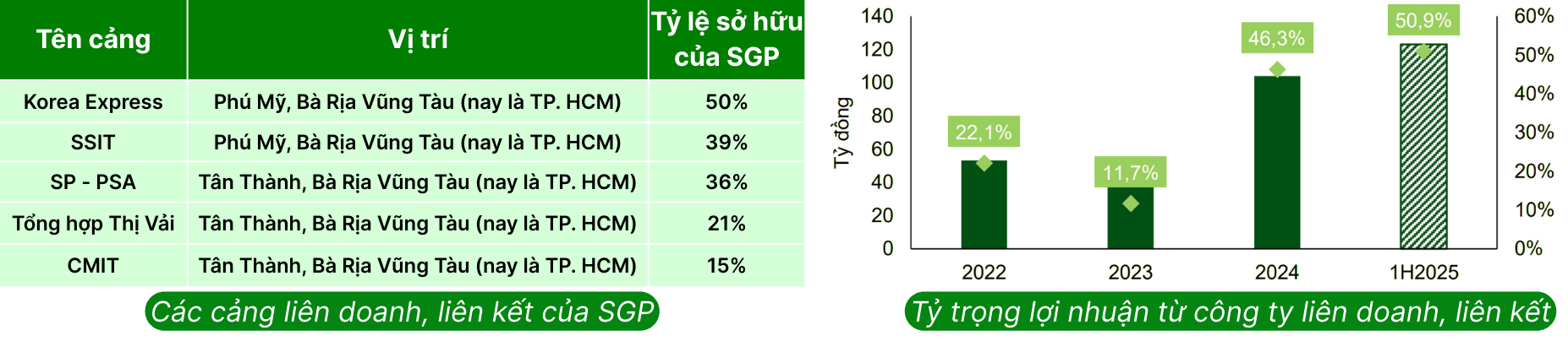 Lợi nhuận từ công ty liên doanh, liên kết đóng góp 50,9% vào lợi nhuận nửa đầu năm 2025 của SGP và đang có xu hướng tăng lên.