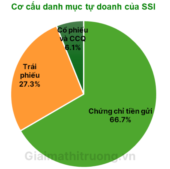 Danh mục đầu tư của SSI sở hữu quy mô top đầu ngành và có độ an toàn cao, lợi nhuận ổn định hơn các CTCK khác do chủ yếu phân bổ vào các tài sản thu nhập cố định như trái phiếu và chứng chỉ tiền gửi. Vì vậy diễn biến của thị trường chứng khoán sẽ không tác động lớn đến hiệu quả của danh mục đầu tư, đồng thời cũng ít khi xuất hiện lợi nhuận đột biến từ tự doanh như VIX.
