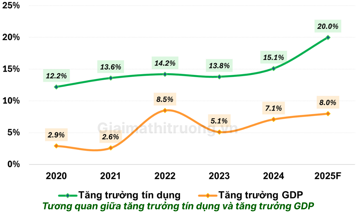 • Bức tranh ngành ngân hàng Việt Nam năm 2025 là một pha “hồi sức” sau cú siết tín dụng – bất động sản 2022–2023. Các tổ chức phân tích kỳ vọng tăng trưởng tín dụng toàn hệ thống 2025–2026 vào khoảng 19–20%/năm, lợi nhuận ngành tăng 15–18%/năm. Tuy nhiên, biên lãi ròng (NIM) lại không còn màu mỡ như trước, do cạnh tranh huy động gay gắt hơn và mặt bằng lãi suất có xu hướng nhích lên.