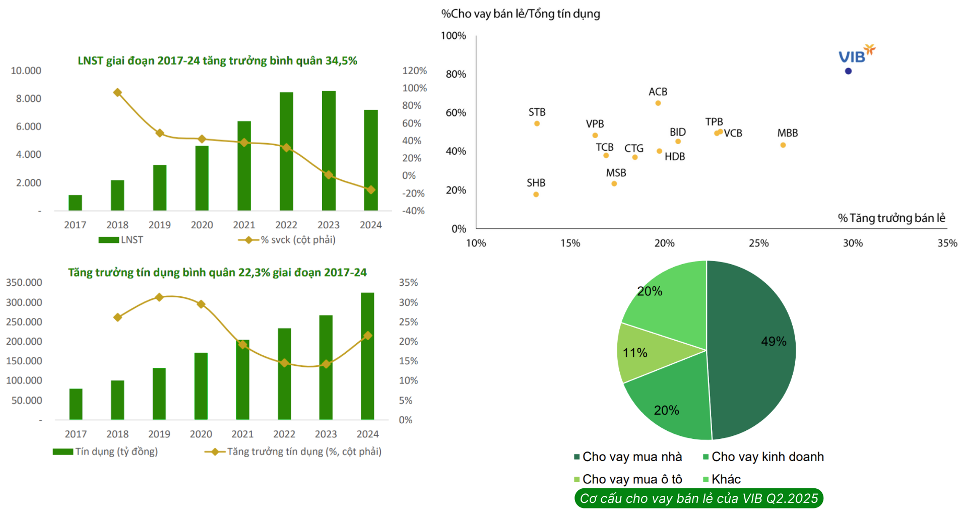 VIB một trong các ngân hàng có tỷ lệ bán lẻ và hiệu quả sinh lời dẫn đầu ngành, với thị phần top đầu ở một số mảng kinh doanh trọng yếu.