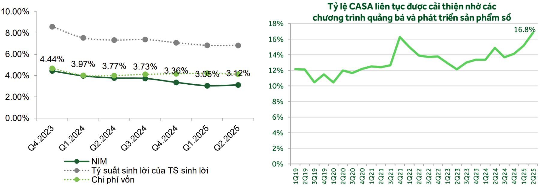 ➢ Bên cạnh đó, tỷ lệ CASA liên tục có sự cải thiện khi ghi nhận ở mức 16,8% cuối Q2.2025 là một trong những yếu tố giúp hỗ trợ chi phí vốn của ngân hàng trong thời gian tới nhờ chiến lược gia tăng huy động nguồn vốn giá rẻ thông qua các sản phẩm mới như Tài khoản siêu lợi suất.