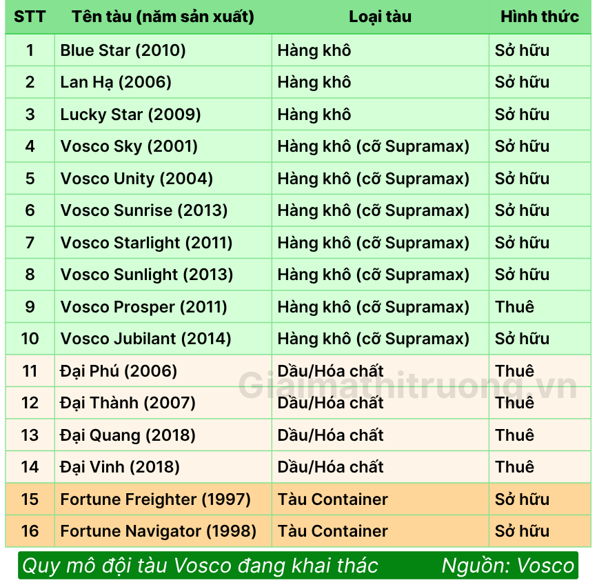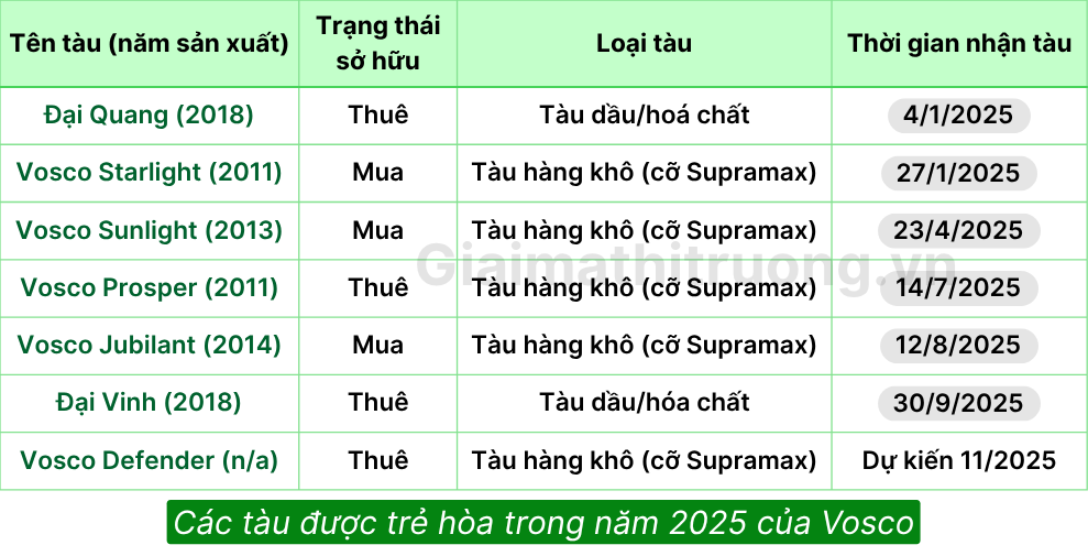 ➡ Khi chu kỳ vận tải biển hồi phục (cước tăng trở lại), giá trị đội tàu tăng mạnh – giúp Vosco hưởng lợi kép: giá tài sản tăng và lợi nhuận khai thác cao.